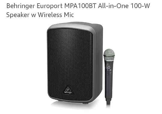 Audiocratz suggest ...Easy-to-use wireless, go-anywhere PA system right out of the box Use the extremely lightweight, yet powerful EUROPORT MPA100BT PA system to stream songs from your Bluetooth-enabled iOS device at the next company picnic, or to get your message across on the playing field. With its 100-Watt amplifier and premium 2-way speaker system, the MPA100BT provides superb sound for up to 300 people – and the rechargeable battery lasts up to 20 hours. We've even included one of our high-performance ULM300USB digital wireless microphones for a supremely