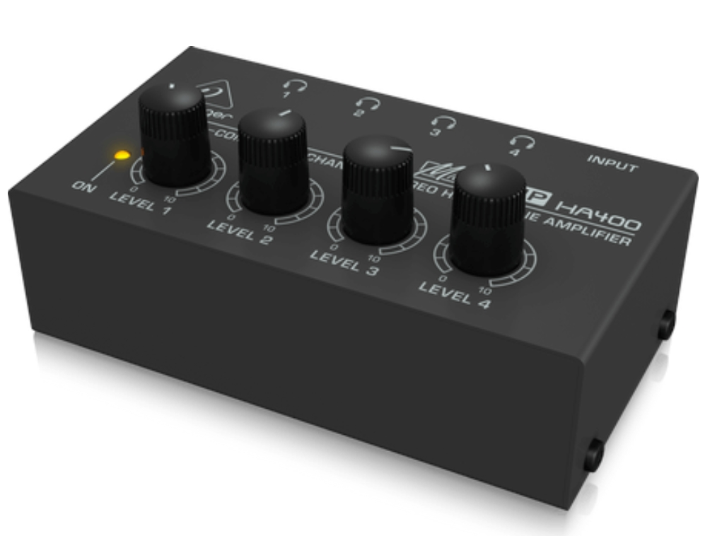 MICROAMP HA400 If you're tracking more than one musician at a time, or if everyone in the group wants to listen to the playback, you’re need a monitor distribution system. A distribution system allows everyone to listen in, and control the volume of his or her own headphones. The compact and flexible HA400 can power up to 4 pairs of headphones and up to 4 independent volumes, with outstanding audio quality – even at maximum volume!