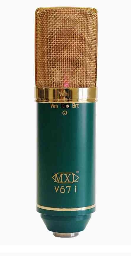 Mxl microphone Two in One ... A large, dual diaphragm version of our legendary V67G, the V67i has a unique, patented design with two selectable pattern one - with the front side having a warm, opulent sound, and the back side simulating some of the brighter, more airy sounding characteristics of early tube mics. The V67i will give you killer results. Features & details Two switch selectable diaphragms. One Warm / One Bright Solid state preamp with balanced transformer output -10 dB pad and roll-off filter Comes with mic clip and wooden case Distinctive green and gold design