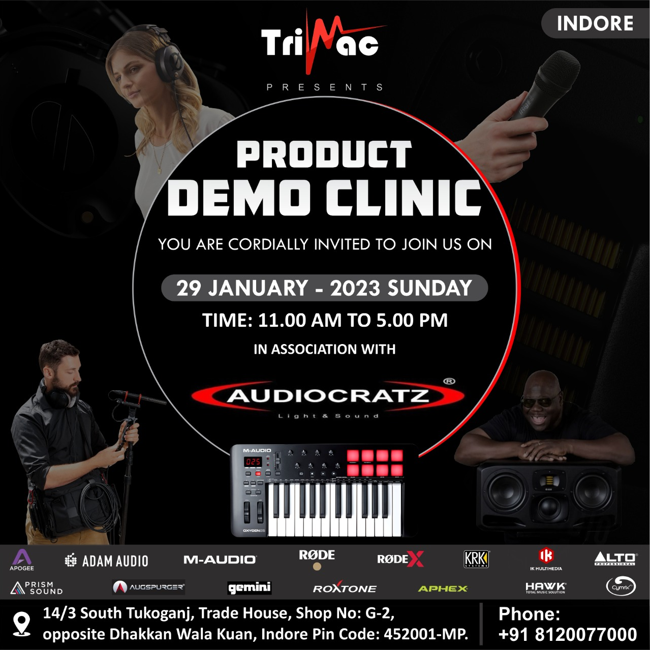 # SAVE THE DATE # Book for free entry on whatsApp by messaging...........YES......, ......Free Opportunity to learn about studio gears with studio professionals show casing variety of Monitors, Microphones, Sound card interfaces, Headphones, Mixers, etc confirm booking to be a part of learning . Website: www.audiocratz.com email:uday@audiocratz.com WhatsApp:81200 7700