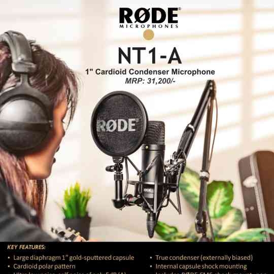 The RODE NT1-A large diaphragm condenser microphone has become an industry standard delivering the warmth, extended dynamic range, clarity and high SPL capability. Check out at Audiocratz, Indore.