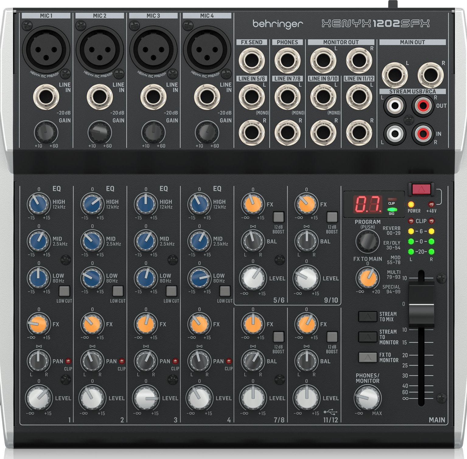 XENYX 1202SFX The XENYX 1202SFX analog mixer features 12 inputs allowing you to effortlessly achieve premium-quality sound that’s perfect for streaming, podcasting or live applications . It provides a warm and ultra-musical sound its Award-winning XENYX microphone preamps featuring 48V phantom power for connecting even hi-end studio microphones. Featured with sound effects for Karaoke singing. Behringer Authorized Dealer, M.P AUDIOCRATZ, 14/3, SOUTH TUKOGANJ,